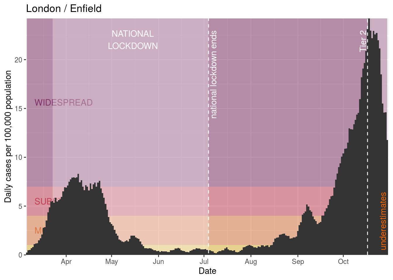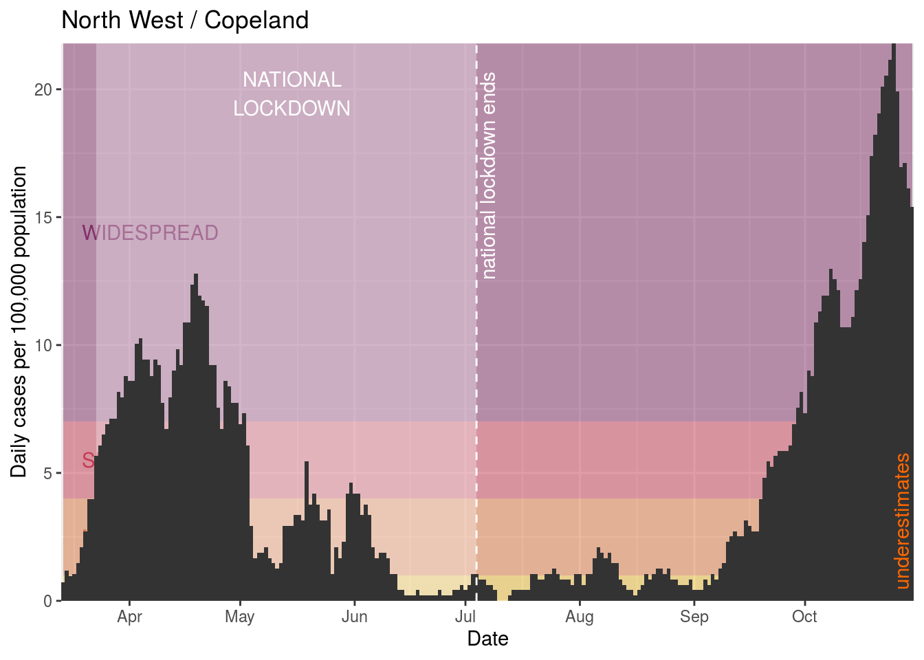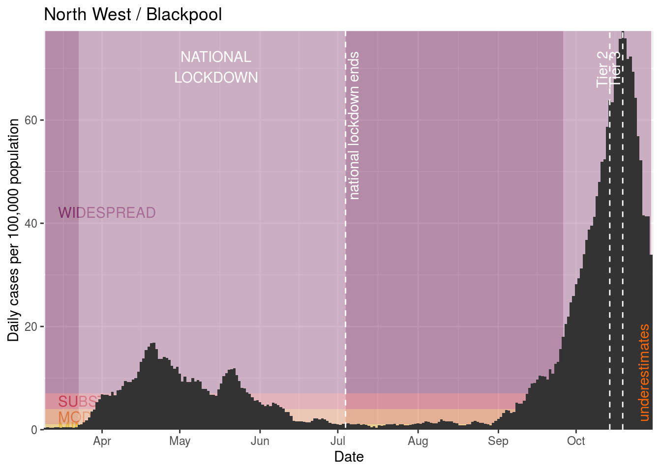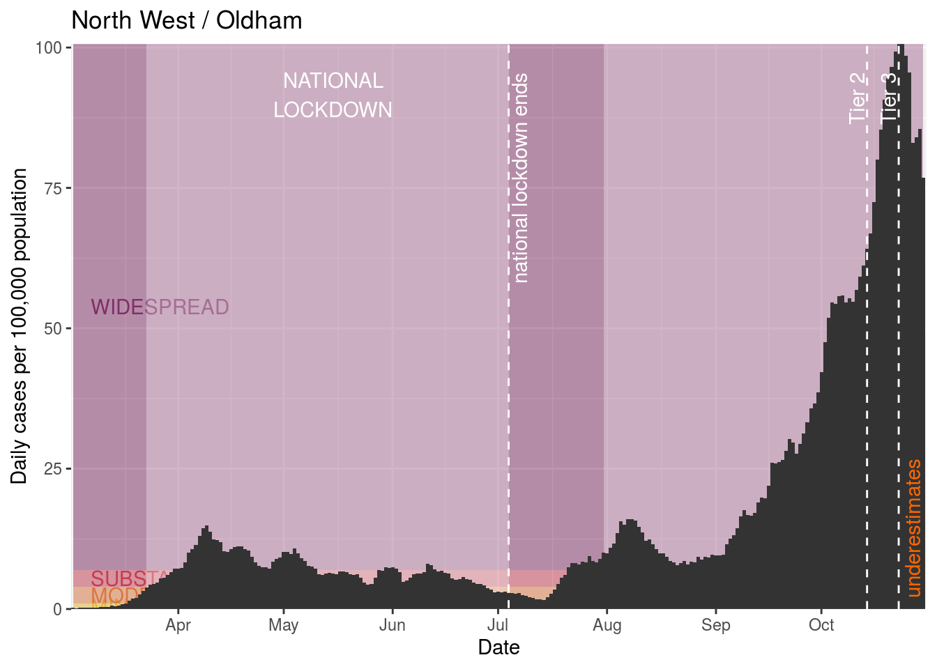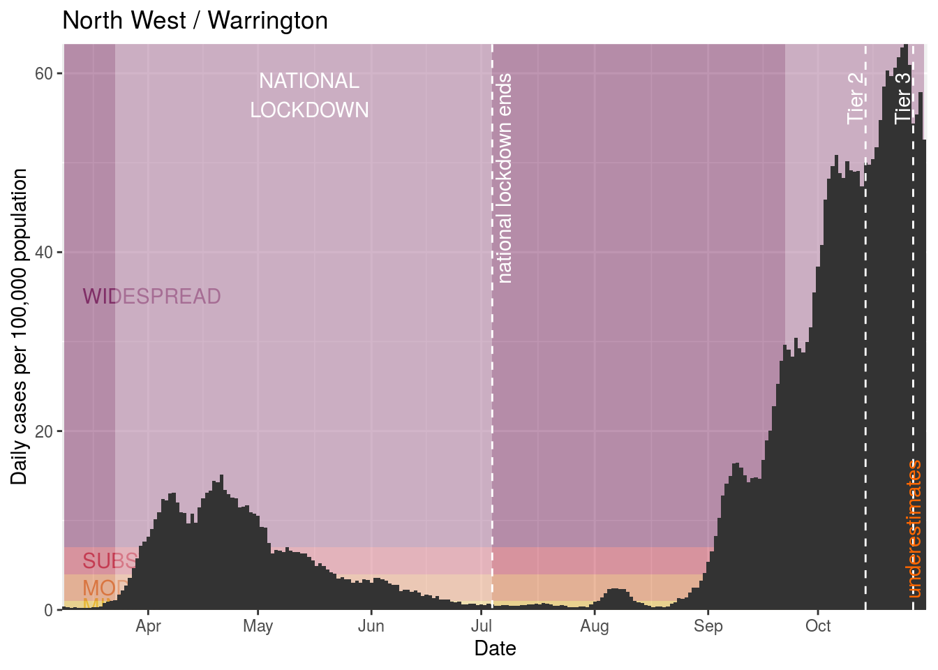 Now we’ll create charts for those places where there is widespread infection that do not currently have additional restrictions (some of which might be duplicates of the graphs above, because they previously did have local restrictions):